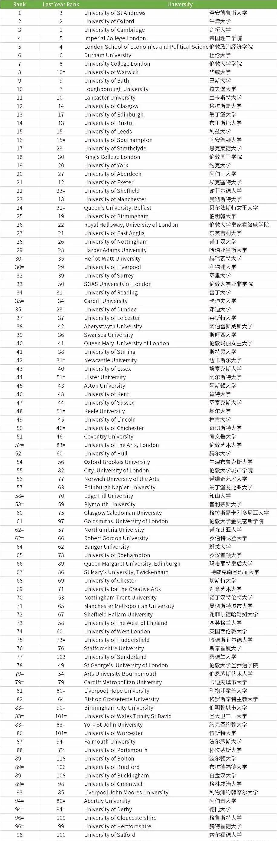 2022 TIMES英國大學排名Top100