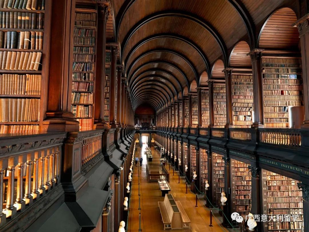 都柏林圣三一大學老圖書館(Long Room)久負盛名,藏有大量的珍貴著作,是愛爾蘭最古老也是規模最大的研究類圖書館,世界上最古老的手寫版《凱爾經》就保存于此,它和英國牛津大學的圖書館、英國大英圖書館并成為歐洲最大的圖書館,其中許多書籍都是愛爾蘭的國寶,且容量非常大,藏書眾多,而且有各類專業書籍、雜志、期刊,各大知名公司、政府工作報告等。
